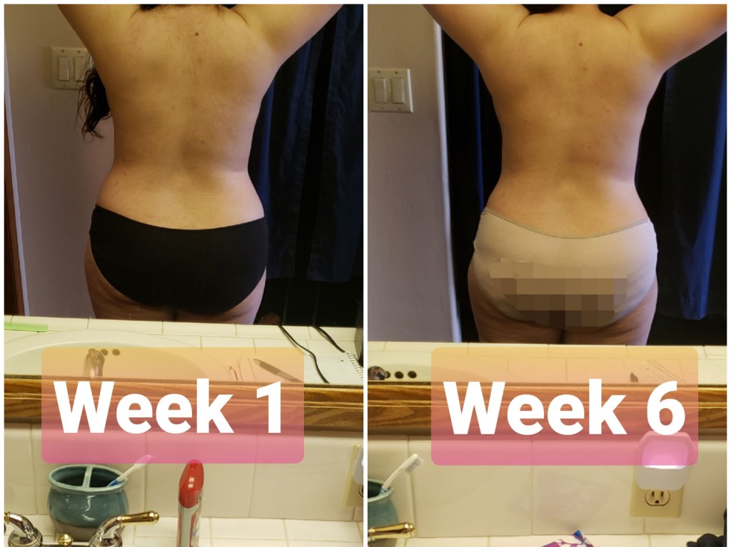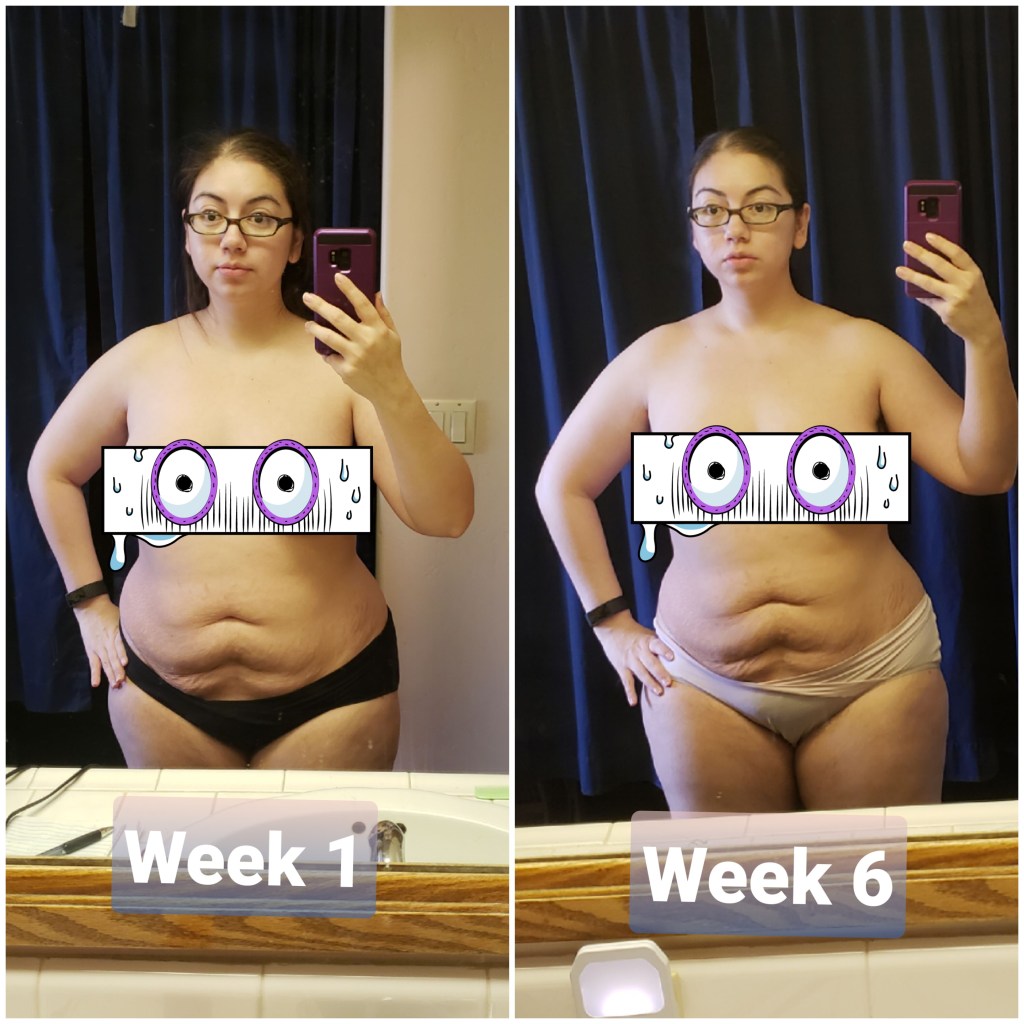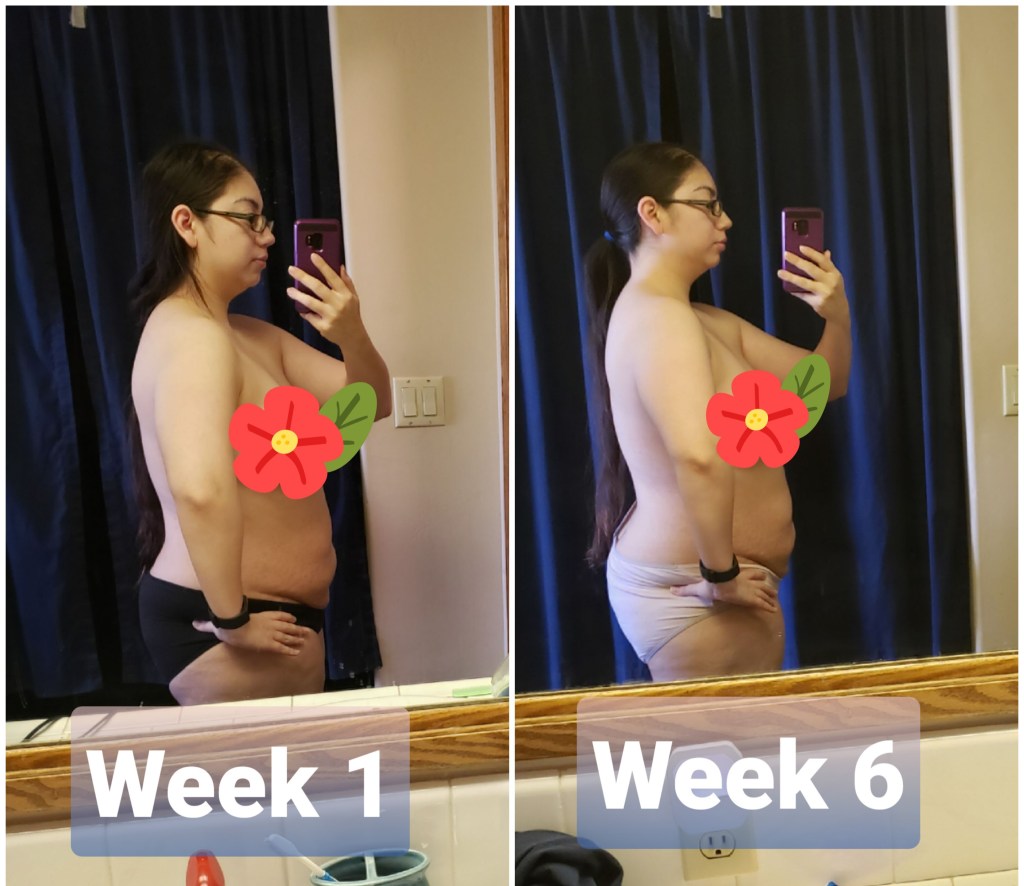As we can see I lost a total of 2.17 inches and 2.6 lbs. Now to be honest this doesn’t seem that great and kind of feels like a bummer, but let’s take a look at some of the before and after pictures-